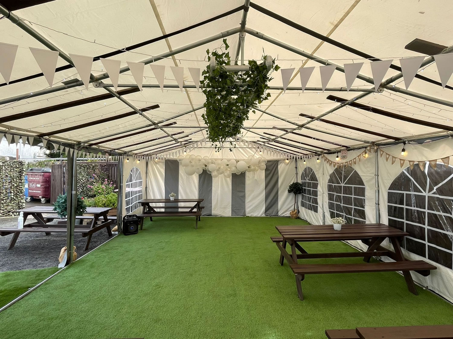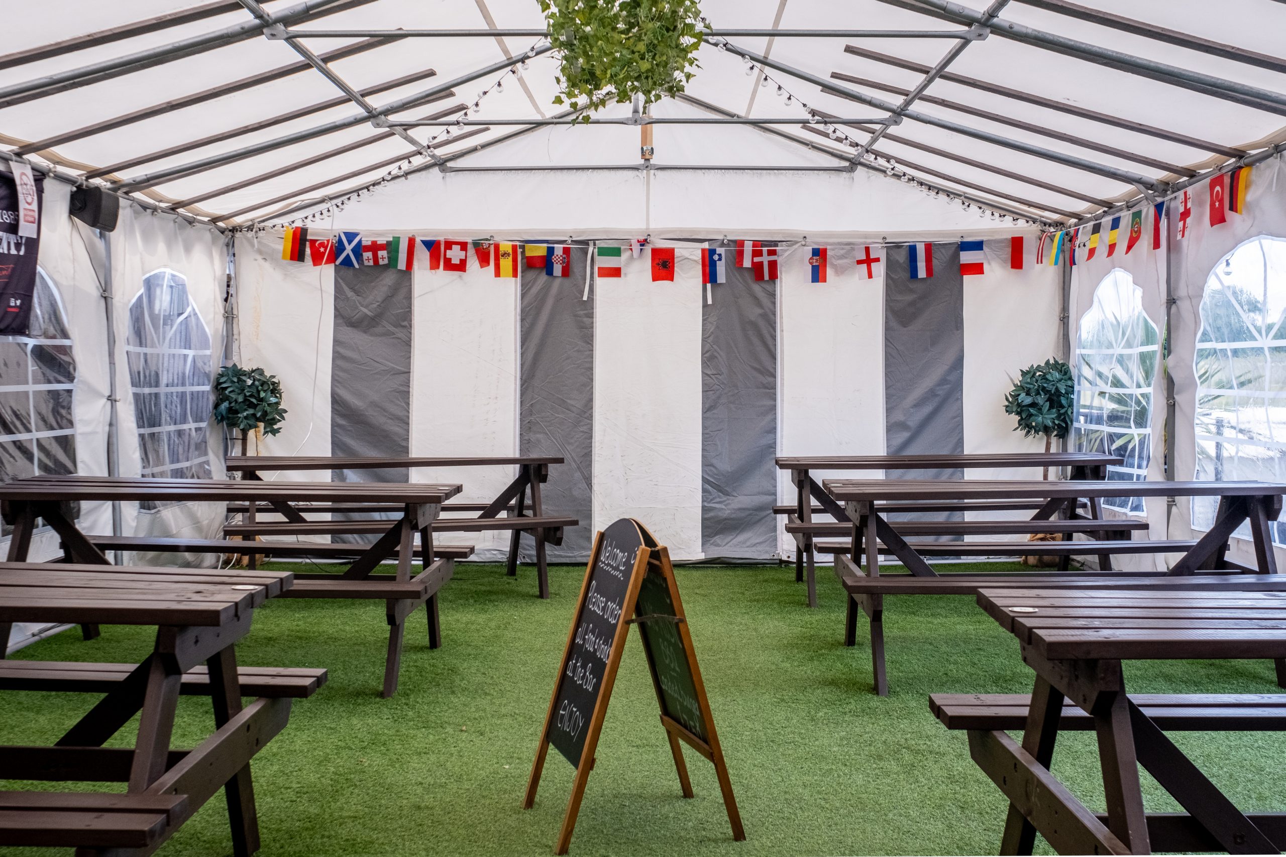 Our Hygge Tent is back for the Summer, showing live sporting events all Summer long – The Hygge Tent is also available to hire for your private celebrations.