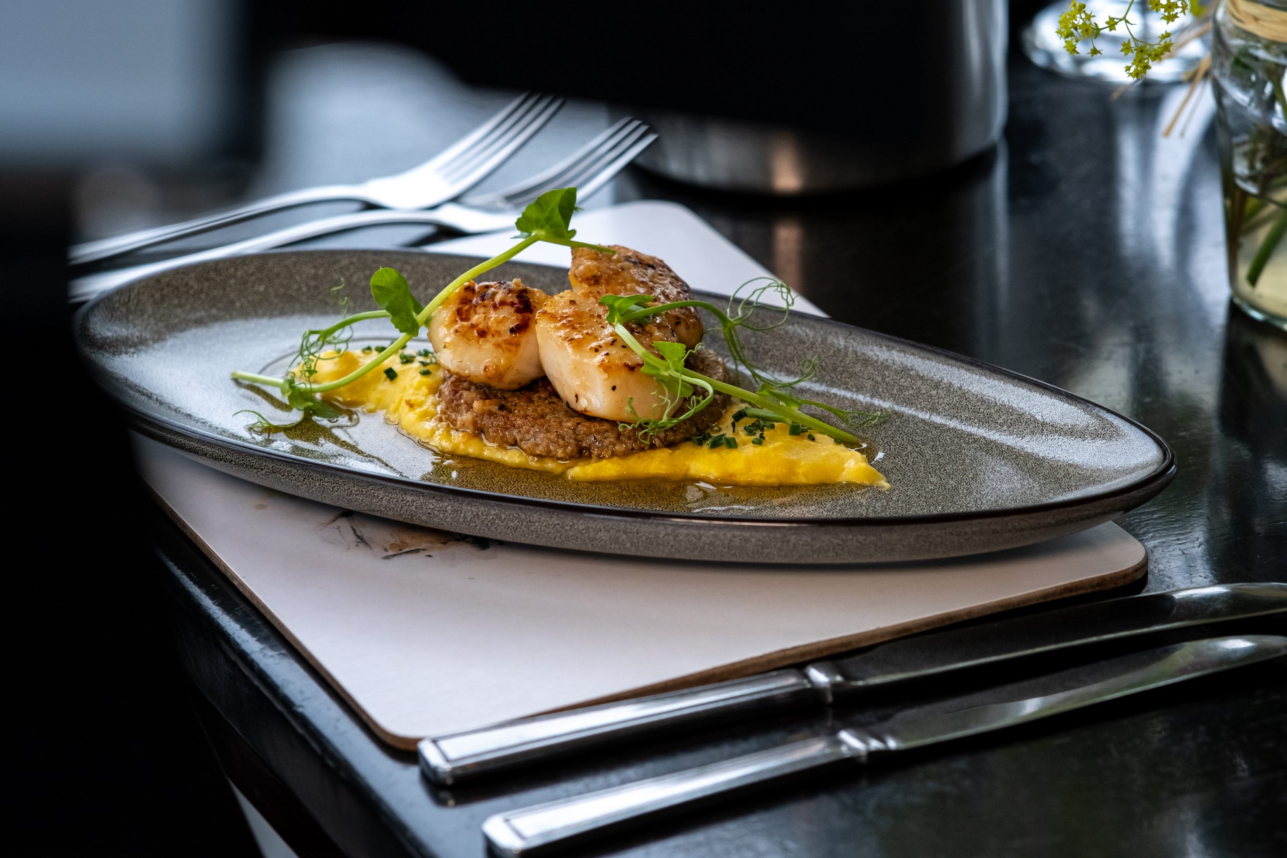 Our seasonal menu features dishes crafted from the finest local produce, including fresh seafood, game, and meats. Standout items include locally sourced prawn tails and our renowned ‘posh’ mac n cheese. Each dish is thoughtfully prepared to highlight the rich flavours of Fife’s land and sea.